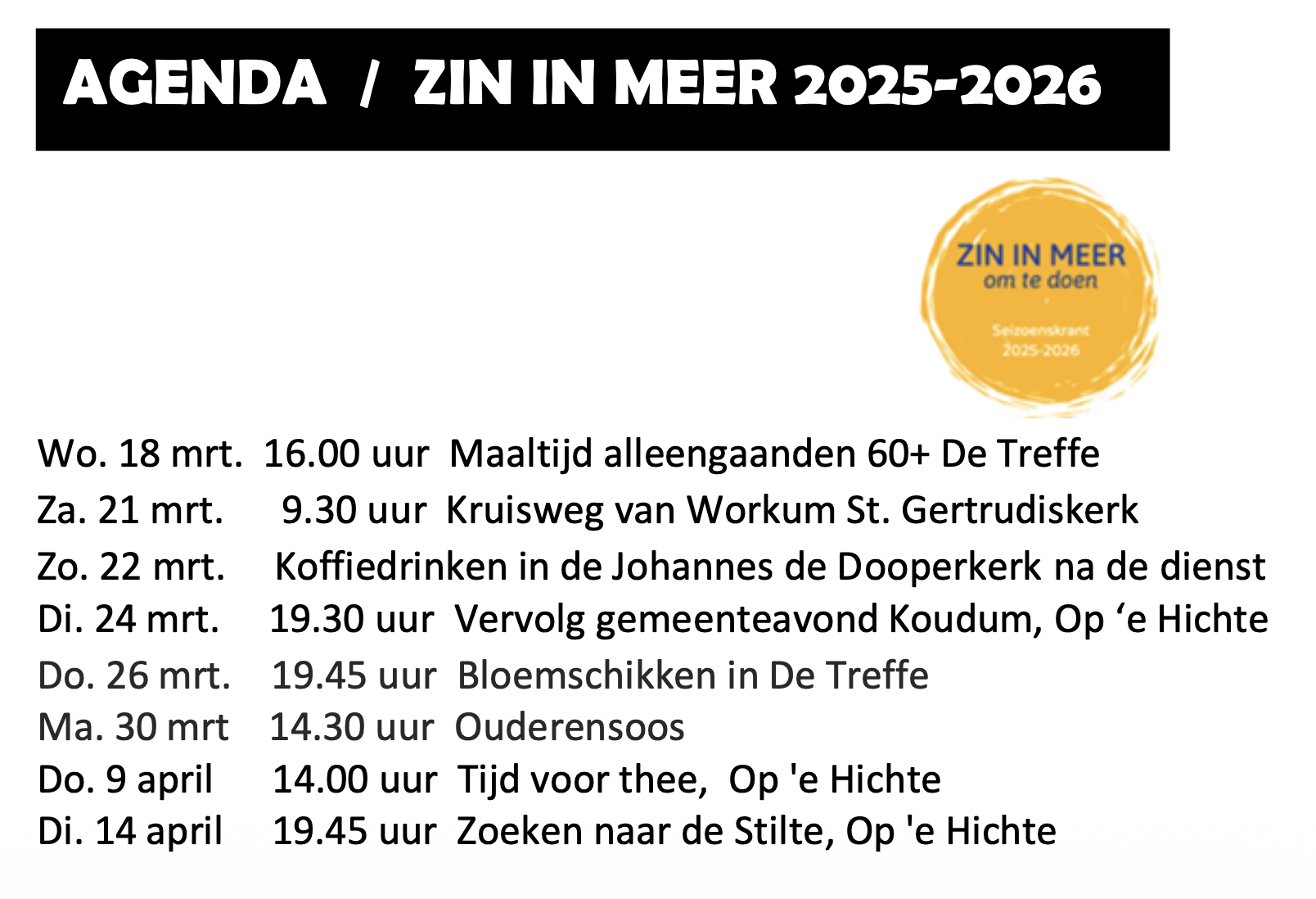 ZIN IN MEER / AGENDA 2025-2026