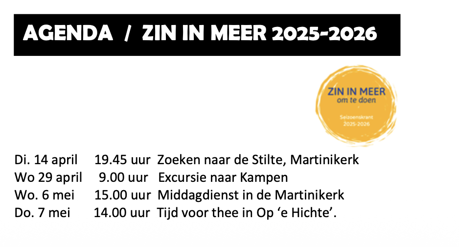 ZIN IN MEER / AGENDA 2025-2026