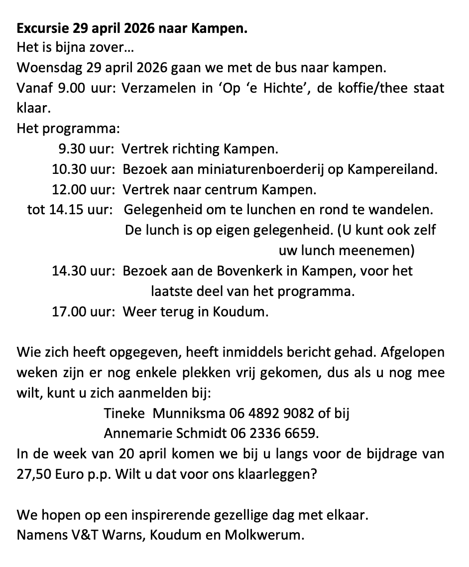 kerkdiensten, agenda